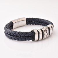 Venta caliente de los hombres de doble cadena de cuero de acero inoxidable accesorios trenzados pulseras marrones