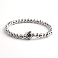 Gioielli alla moda Unisex 6mm acciaio perline elastiche argento Love cuore charm bracciale