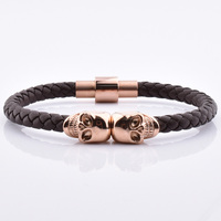 2023 alla moda bracciale in pelle marrone con fibbia magnetica in acciaio inossidabile oro rosa teschio