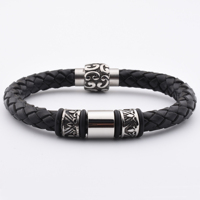 新作ステンレス鋼メンズレザーブレスレットファッションシンプルな性格レトロヒップホップパンクダブルレイヤーメンズジュエリー卸売
