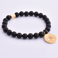天然石女性花カスタムマンOnxyロゴ宝石チャームブレスレットゴールドペンダント付き