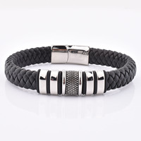 ヒップホップ黒編み本革ブレスレットジルコンステンレスアクセサリーレザーハンドジュエリーブレスレット