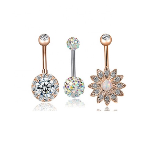 Три больших циркония кольцо пупка из нержавеющей стали Кристалл пирсинг тела ювелирные изделия цветок капля пупка пирсинг Кольца