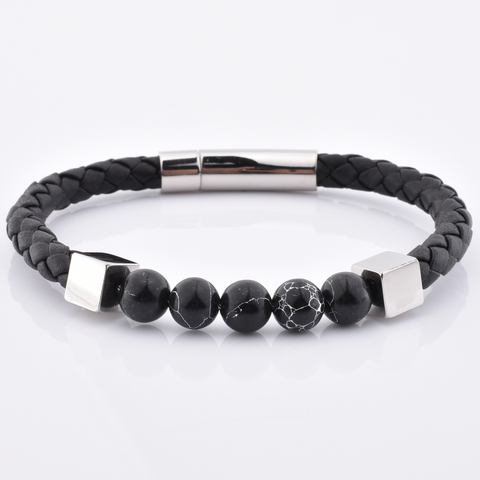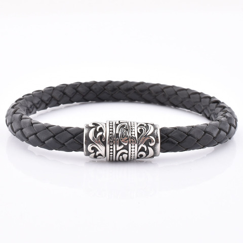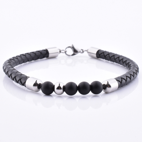 Лидер продаж, браслет из нержавеющей стали хорошего качества в стиле панк, черный плетеный кожаный браслет, индивидуальные мужские браслеты из лавового камня для мужчин