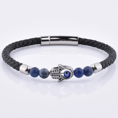 Оптовая Продажа с фабрики, ювелирные изделия ручной работы из нержавеющей стали, мужской плетеный кожаный браслет из содалита