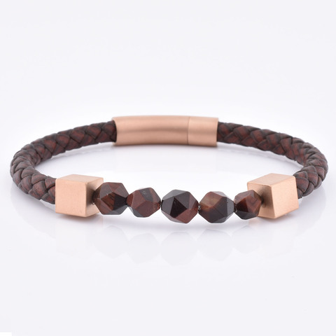 Высокое качество коричневая плетеная кожа граненый красный тигровый глаз бисер ручной работы браслеты из бисера