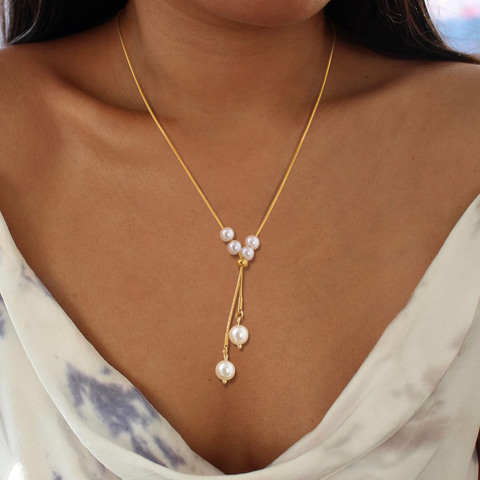 เครื่องประดับมุกแฟชั่นอิตาลีย้อนยุค18K ชุบทองสร้อยคอจี้สแตนเลสกันน้ำสำหรับผู้หญิง