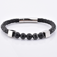 กำไลข้อมือหนังถักสีดำสไตล์พังค์ทำจากสแตนเลสสำหรับผู้ชาย