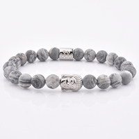 สร้อยข้อมือลูกปัดหินของผู้ชายดีไซน์จี้เสือดาวเสน่ห์แฟชั่นสร้อยข้อมือลูกปัดหินธรรมชาติของขวัญ