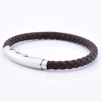 Hot bán người đàn ông của chuỗi đôi da thép không gỉ Phụ kiện bện Vòng đeo tay màu nâu